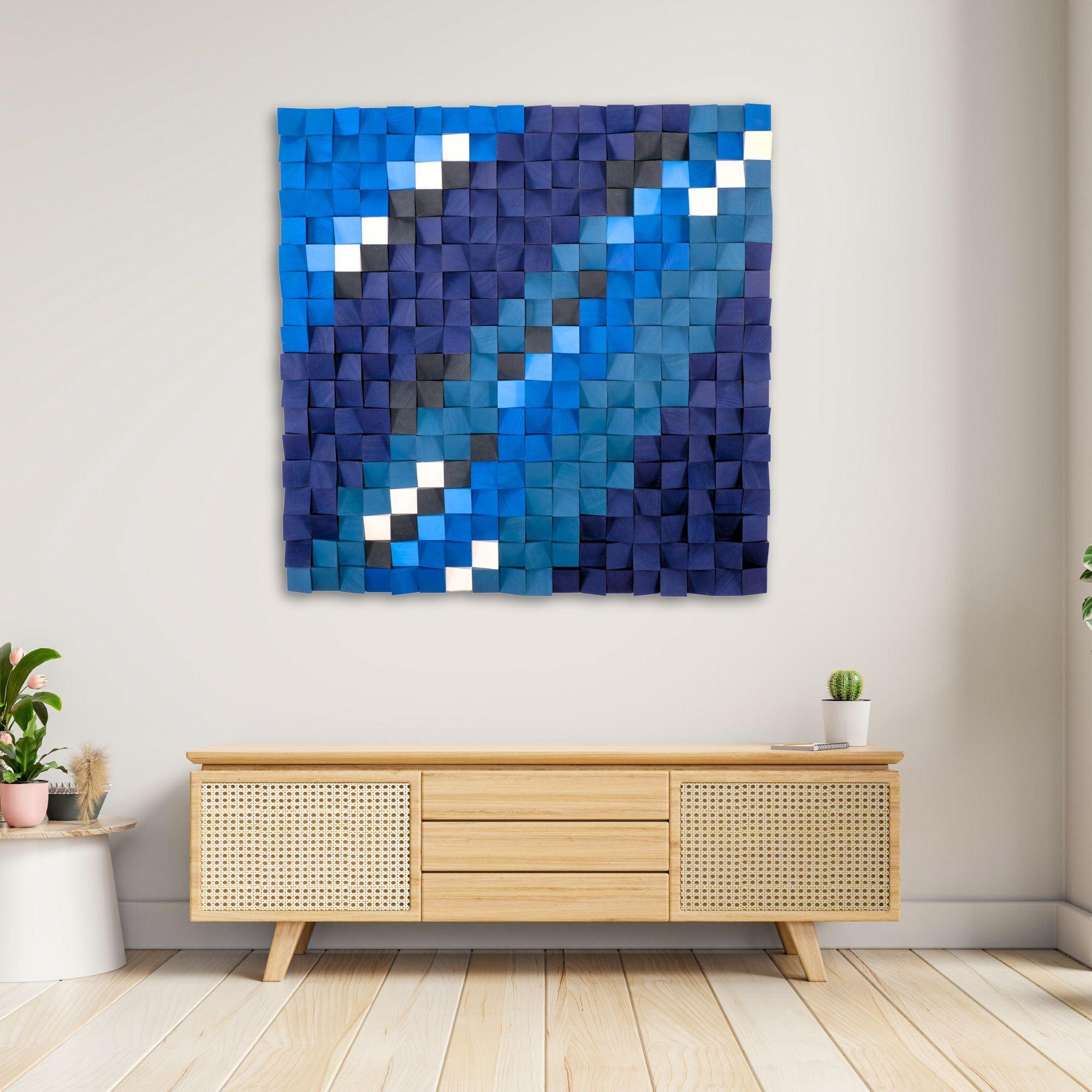 Mavi Nehir Üst Düzey Ahşap El Yapımı Duvar Heykeli - Sınırlı Sayıda