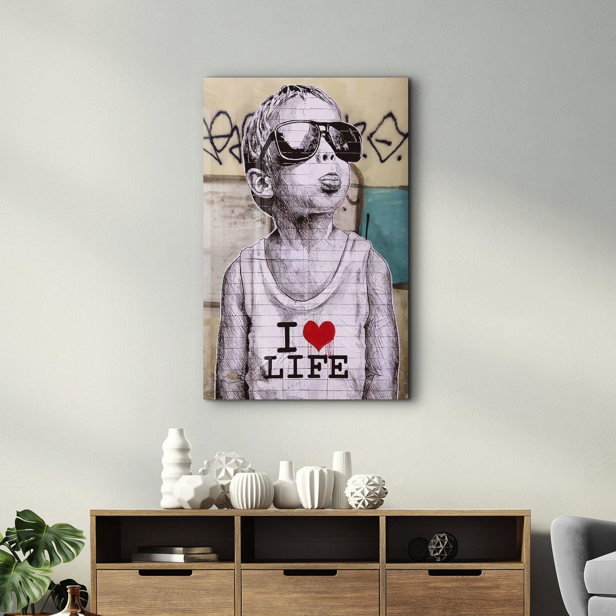 Banksy - HAYATI SEVİYORUM | Tasarımcı Koleksiyonu Cam Duvar Tablosu