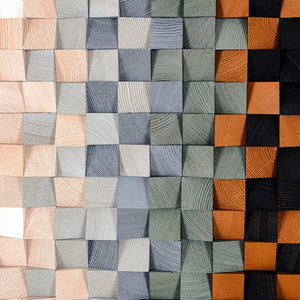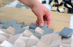 Son aşamada, boyanan küpler özenle bir araya getirilir ve ahşabın doğal güzelliğini ve el işçiliğini sergileyen etkileyici, bütüncül bir sanat eseri ortaya çıkar.
