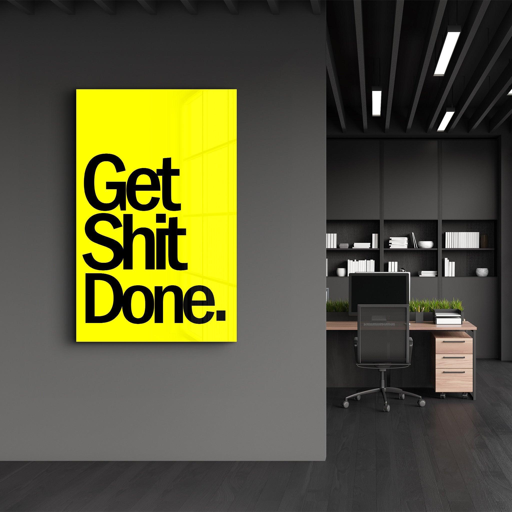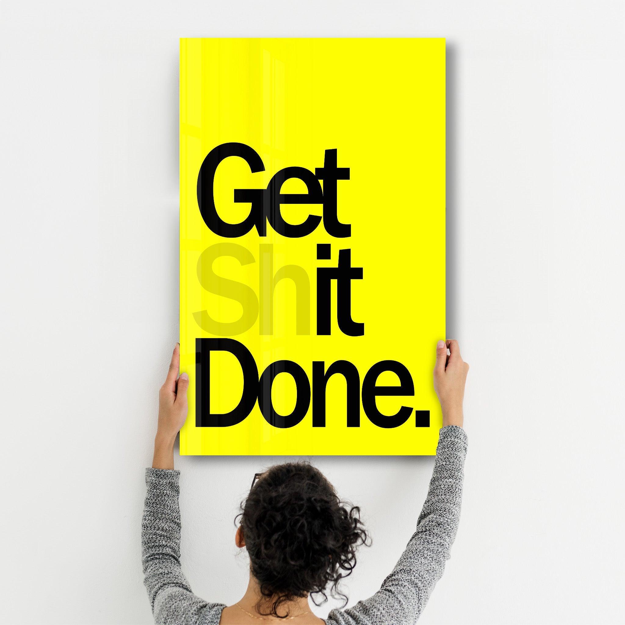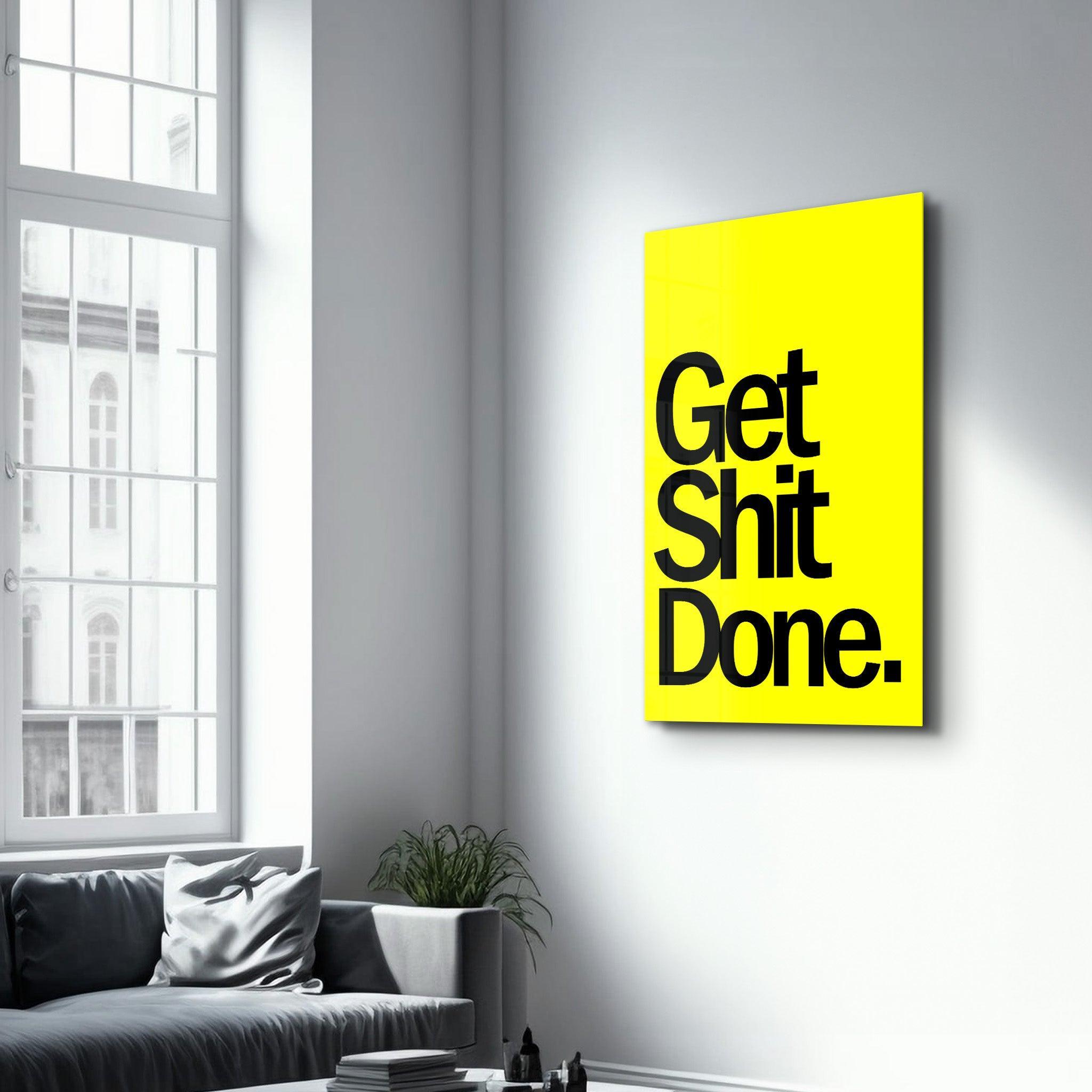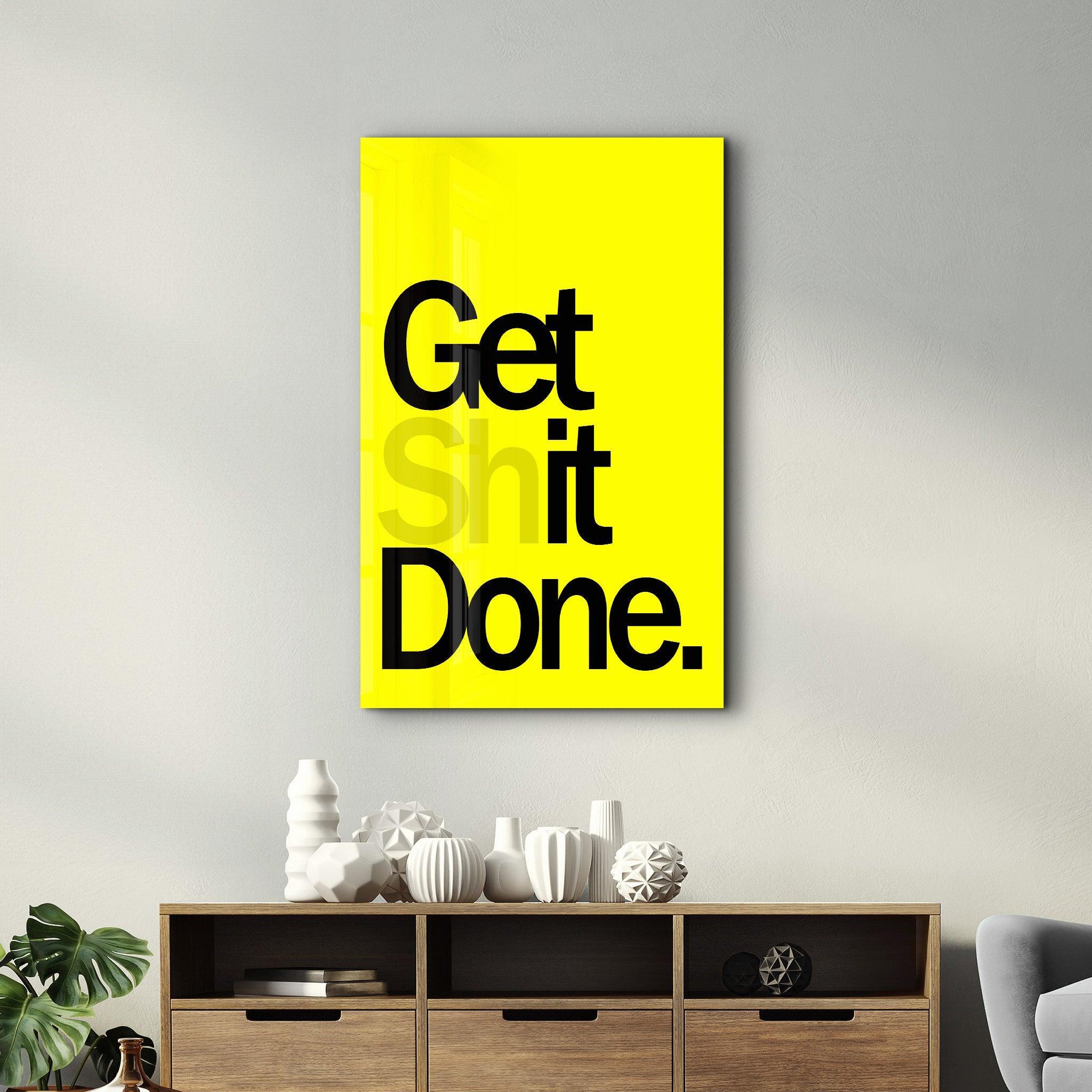 Bu İşi Hallet - Sarı | Tasarımcı Koleksiyonu Cam Duvar Tablosu