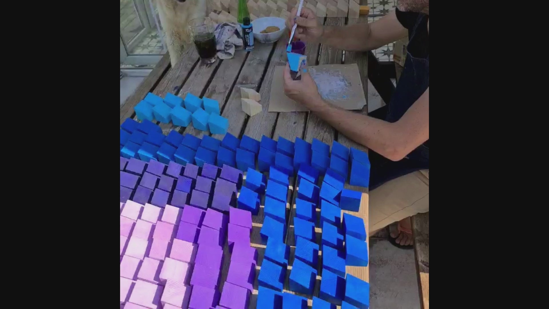 Son aşamada, boyanan küpler özenle bir araya getirilir ve ahşabın doğal güzelliğini ve el işçiliğini sergileyen etkileyici, bütüncül bir sanat eseri ortaya çıkar.