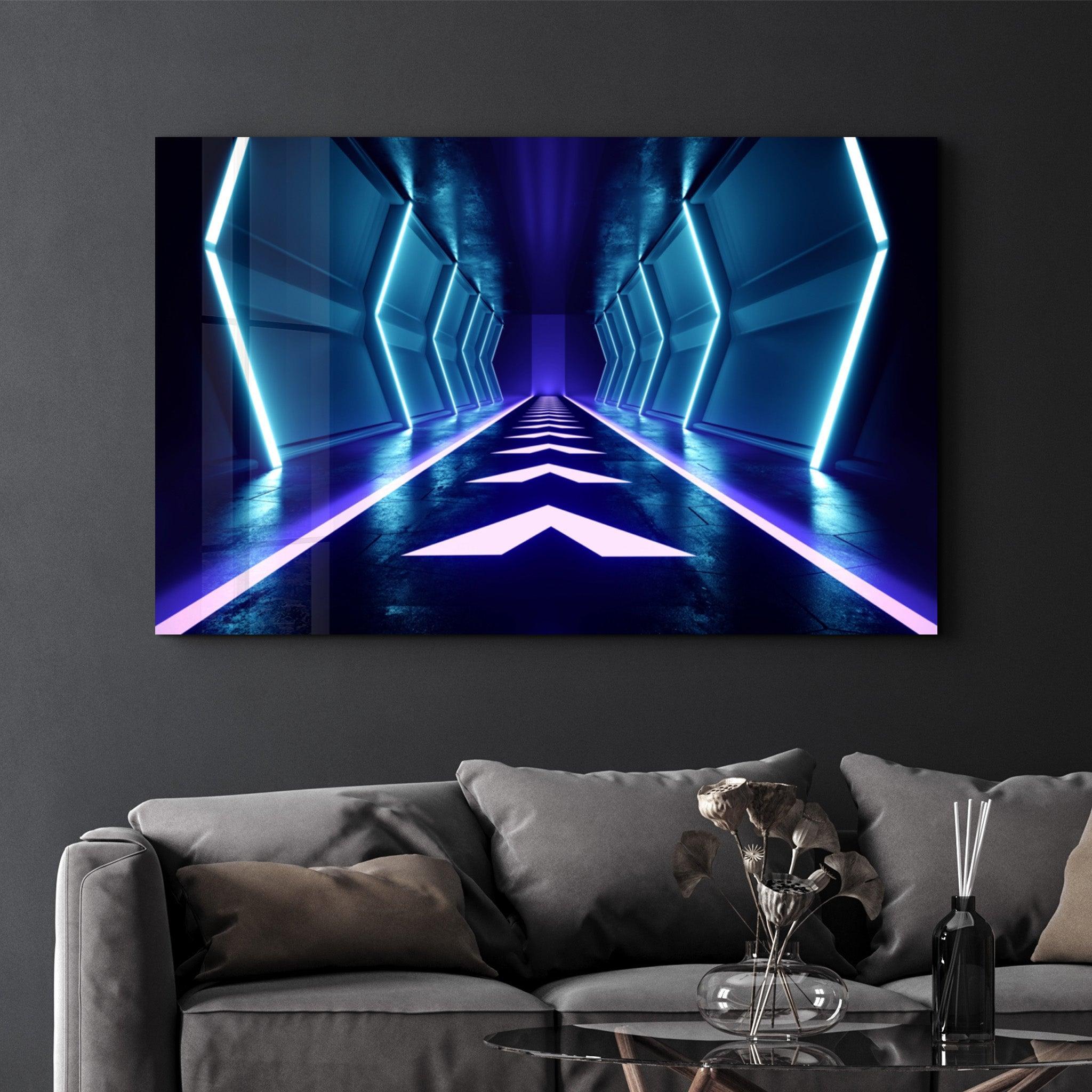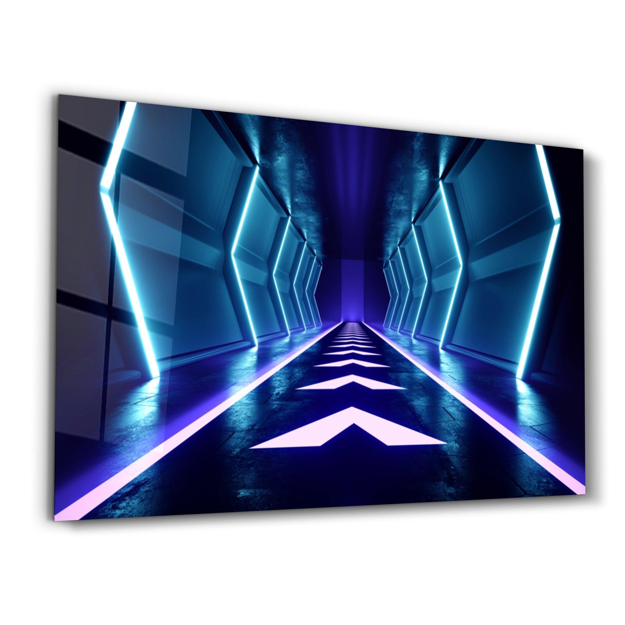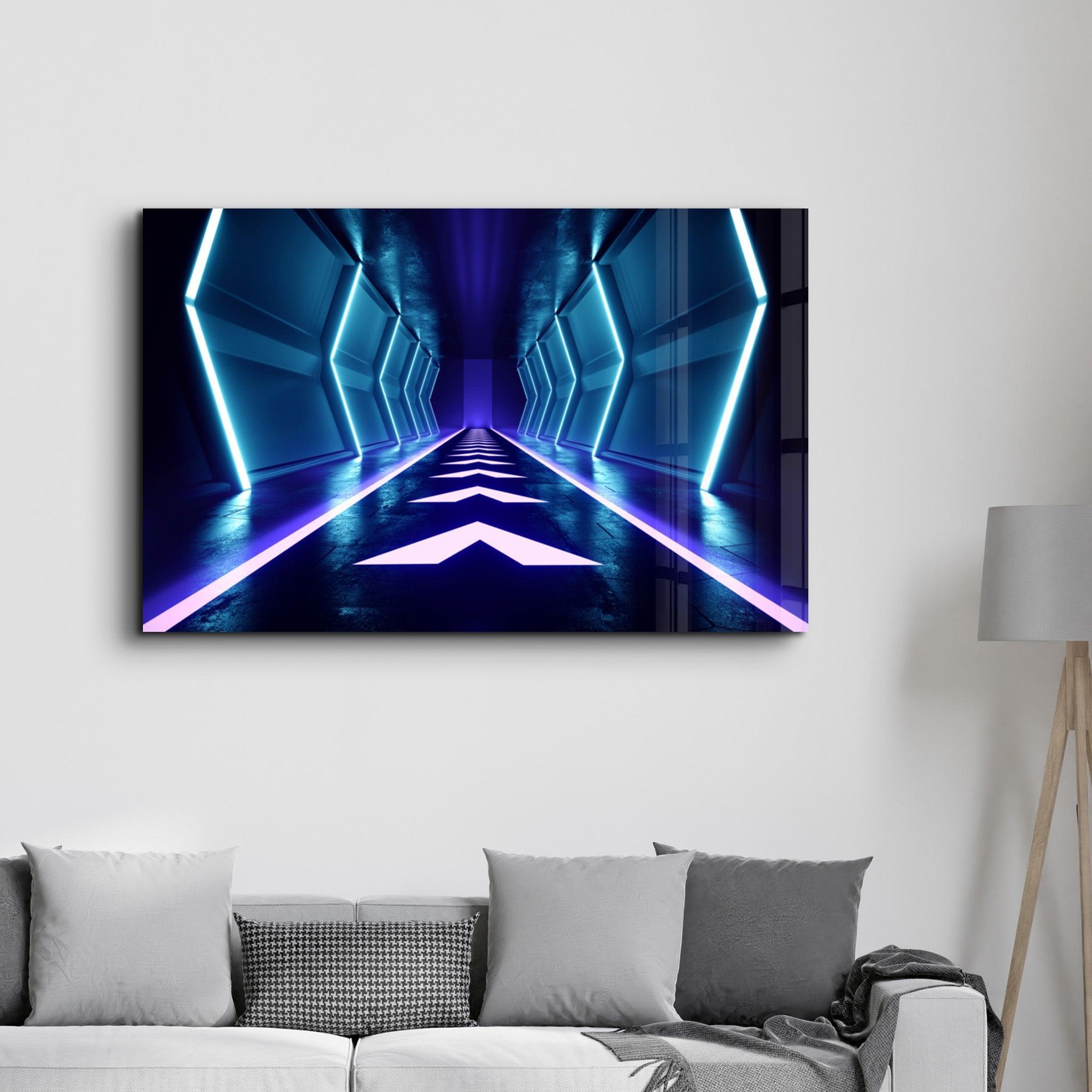 Neon Uzay Gemisi | Cam Duvar Tablosu