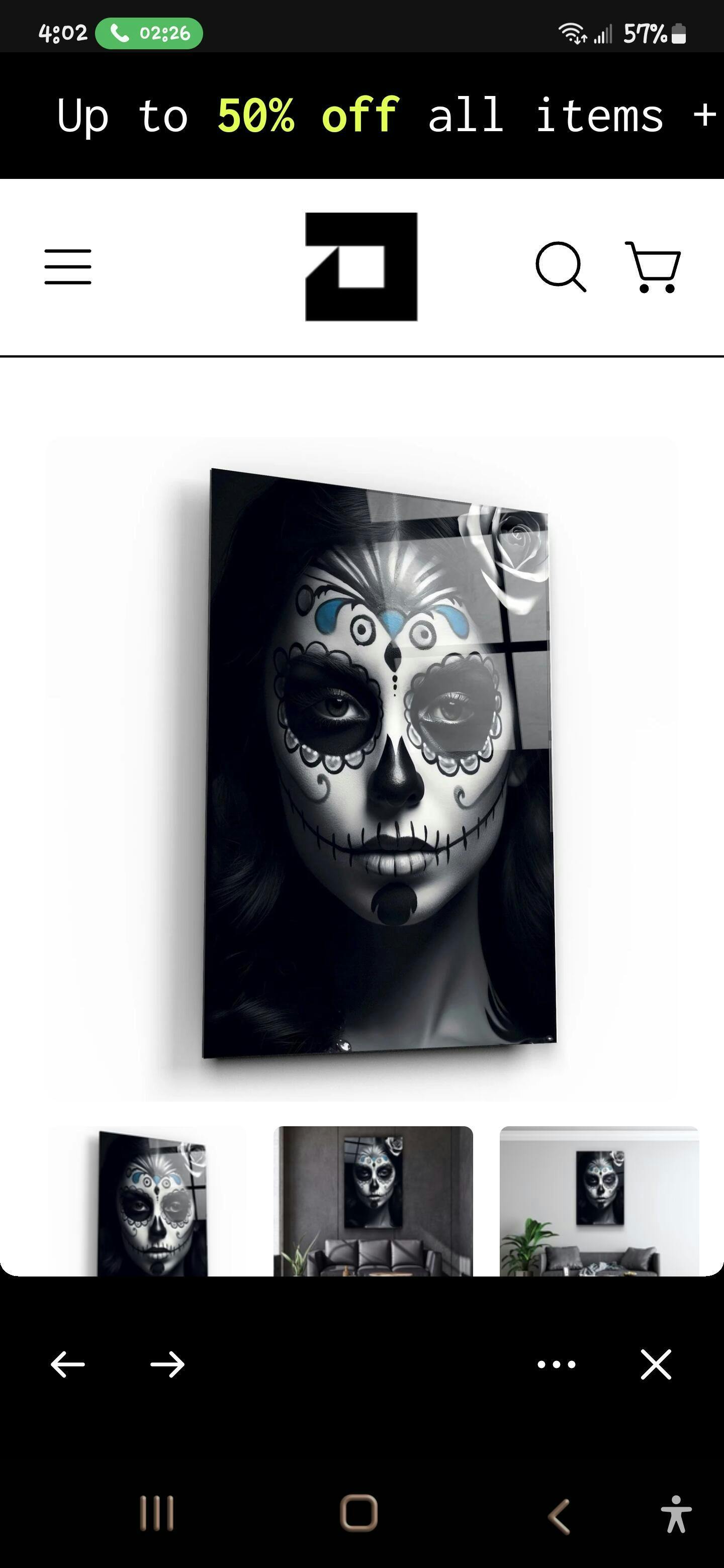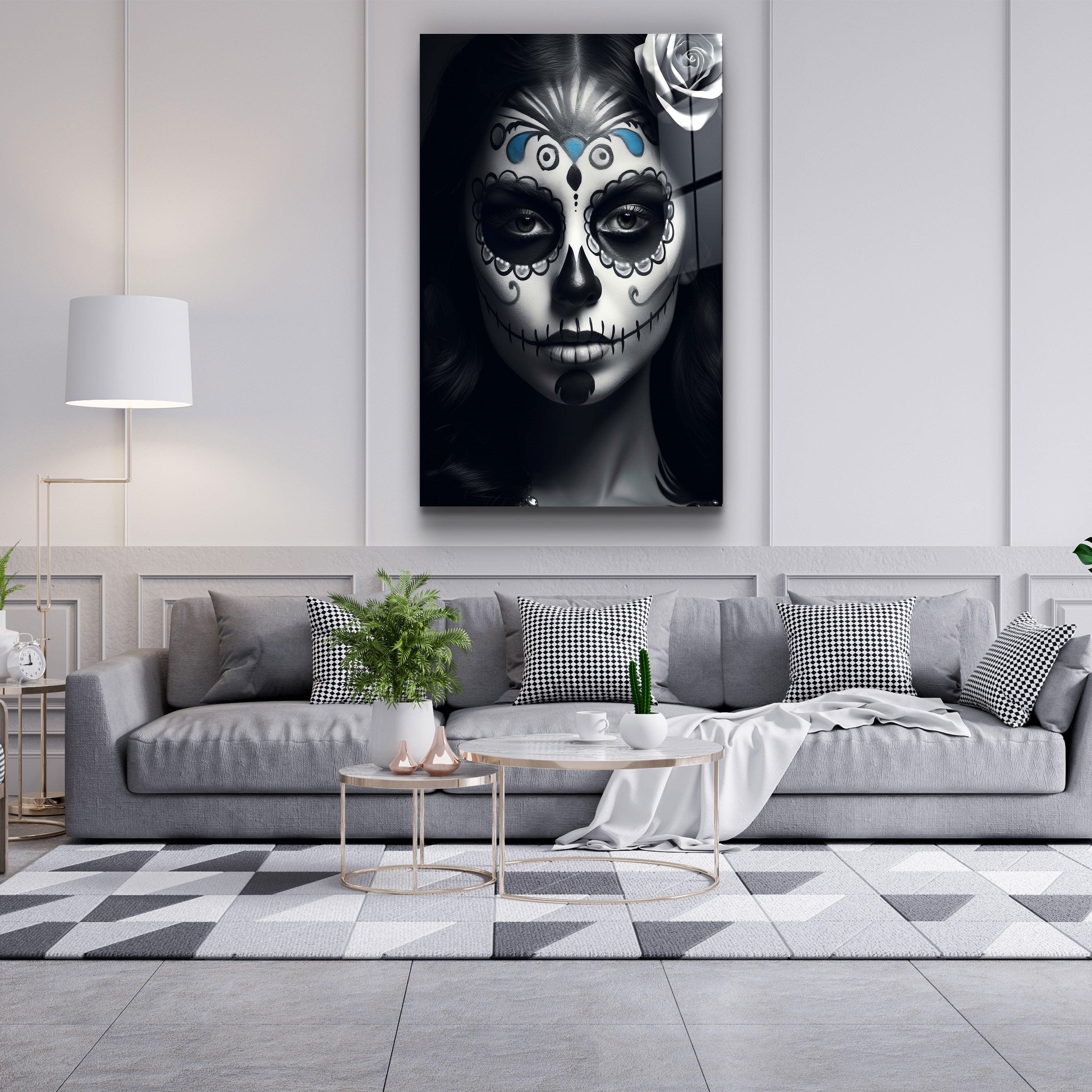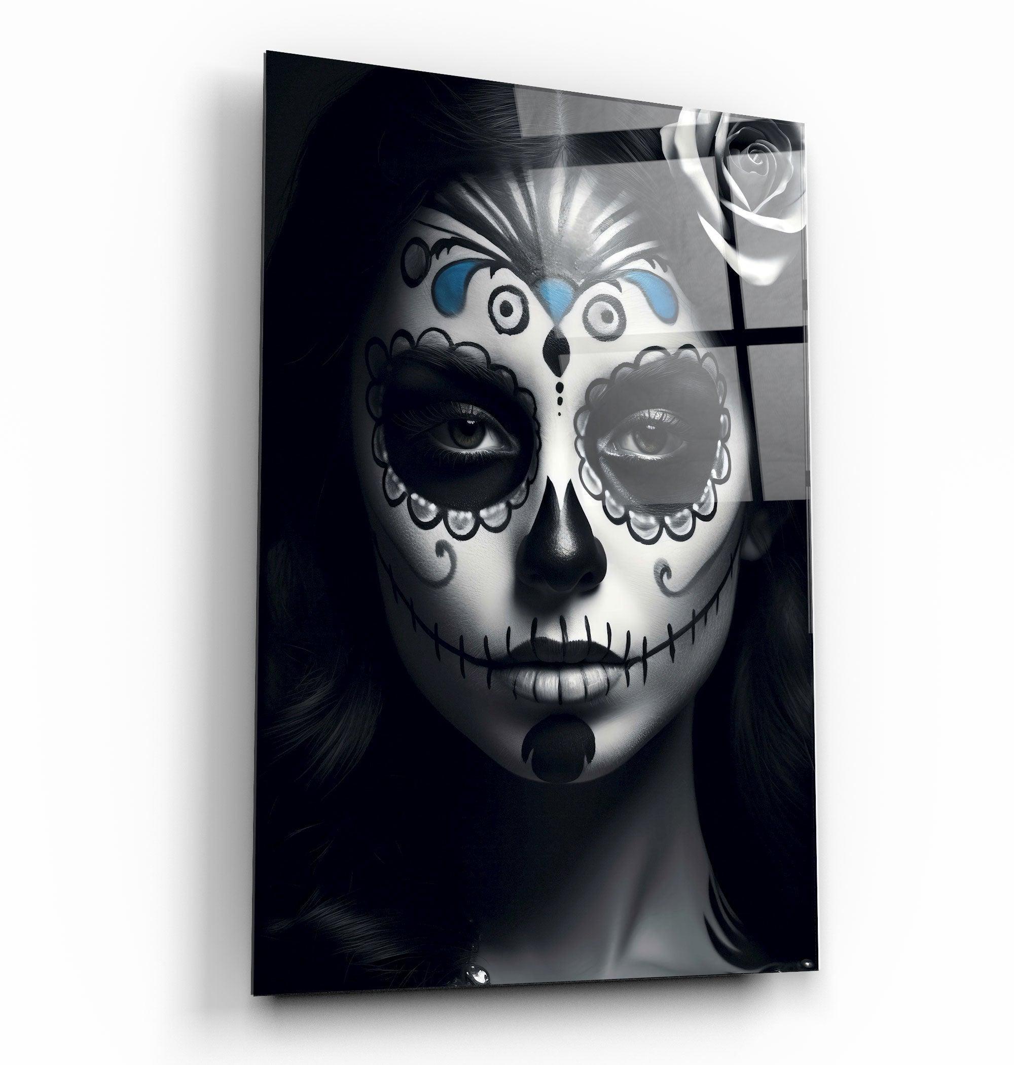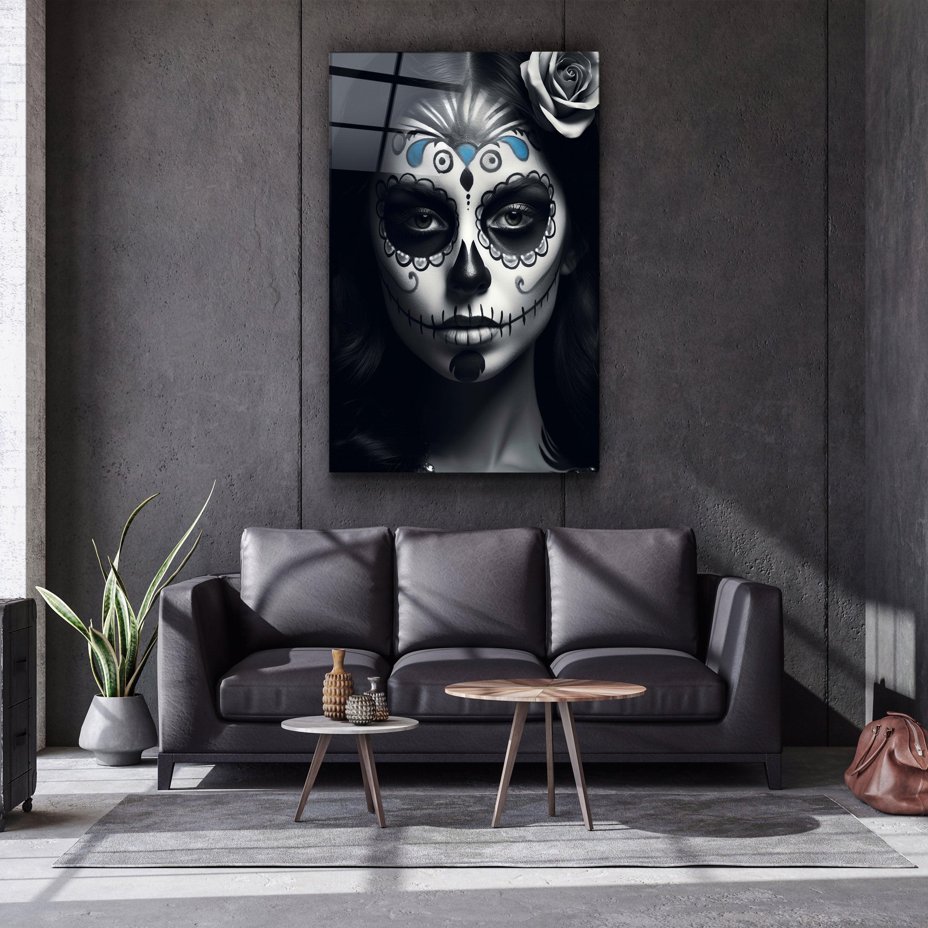 Şeker Kafatası Makyajı | Tasarımcı Koleksiyonu Cam Duvar Tablosu
