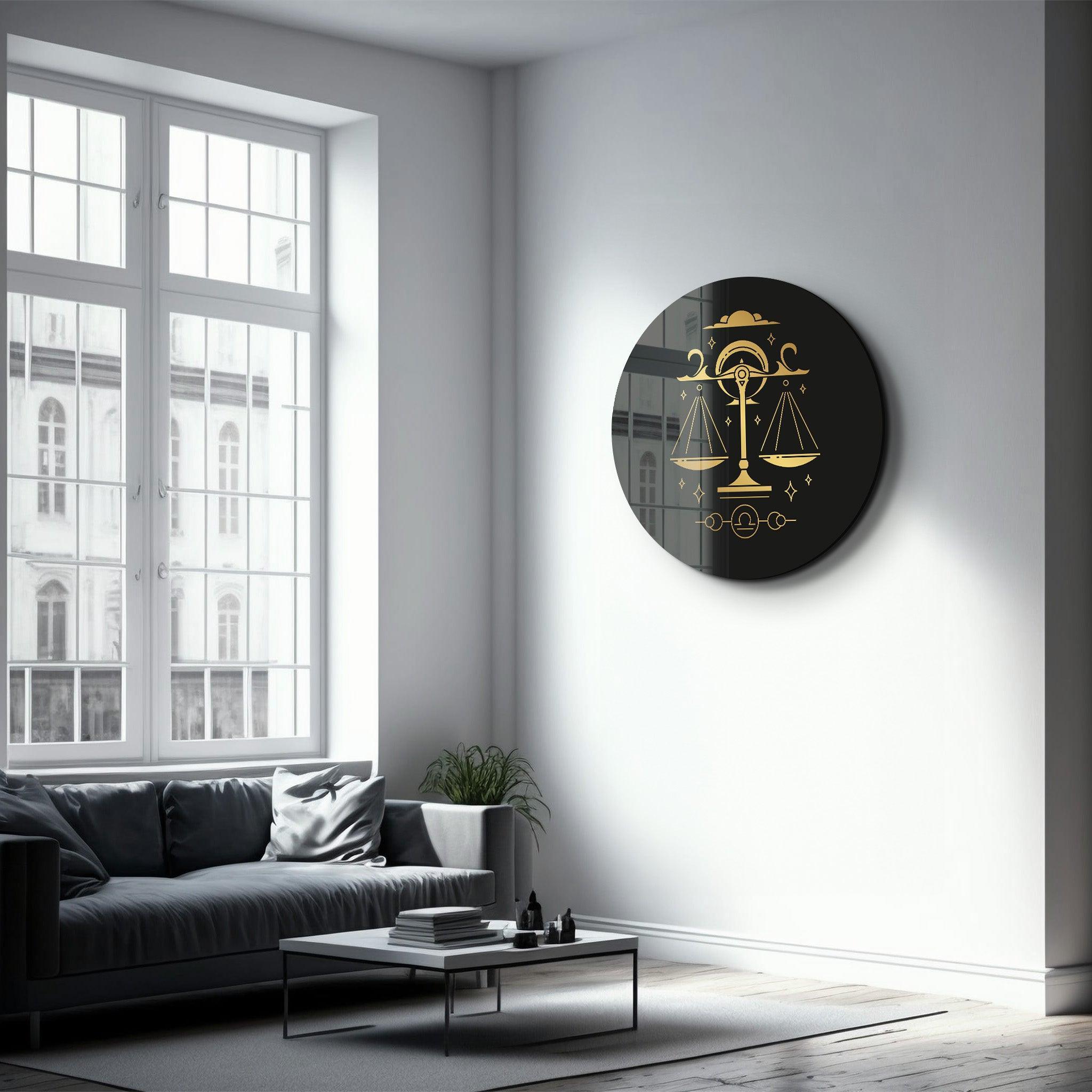 Burçlar - Terazi Yuvarlak Cam Duvar Tablosu
