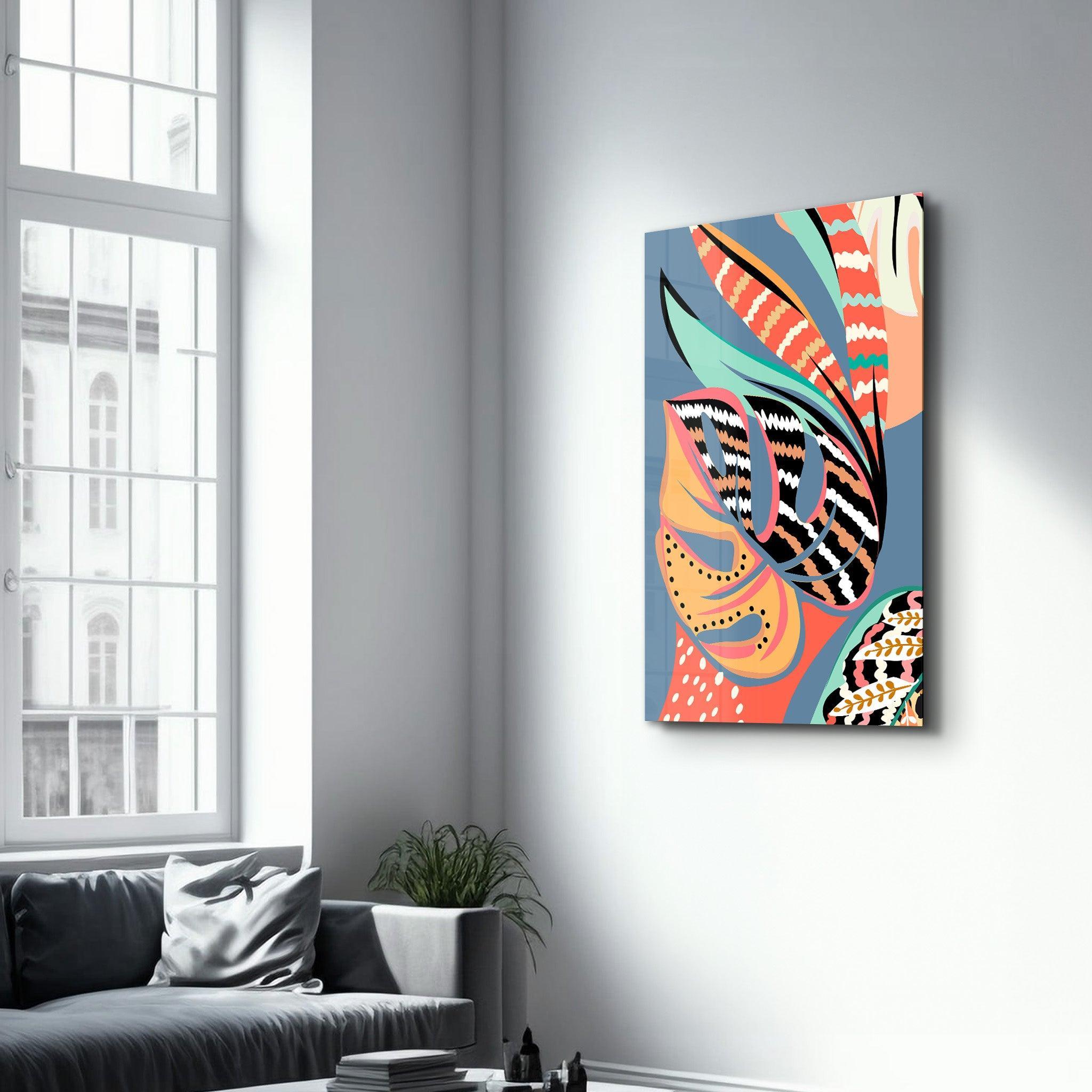 Tropikal Yapraklar İllüstrasyonu 4 | Cam Duvar Tablosu