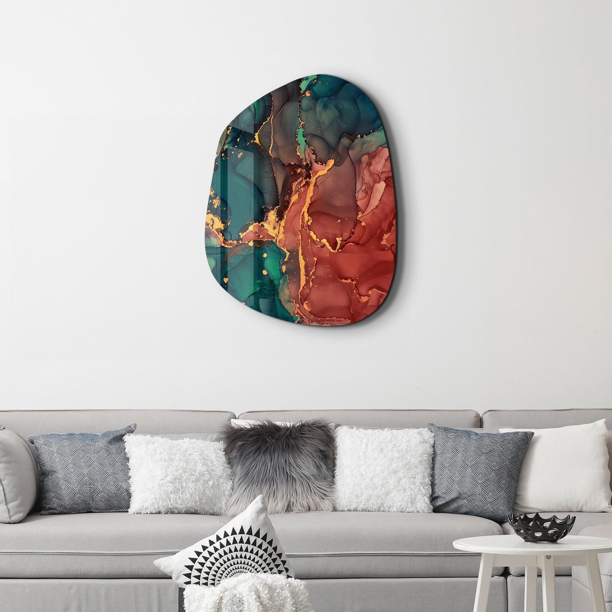 Yeşil ve Kırmızı Mermer Amorf Koleksiyon Cam Duvar Tablosu